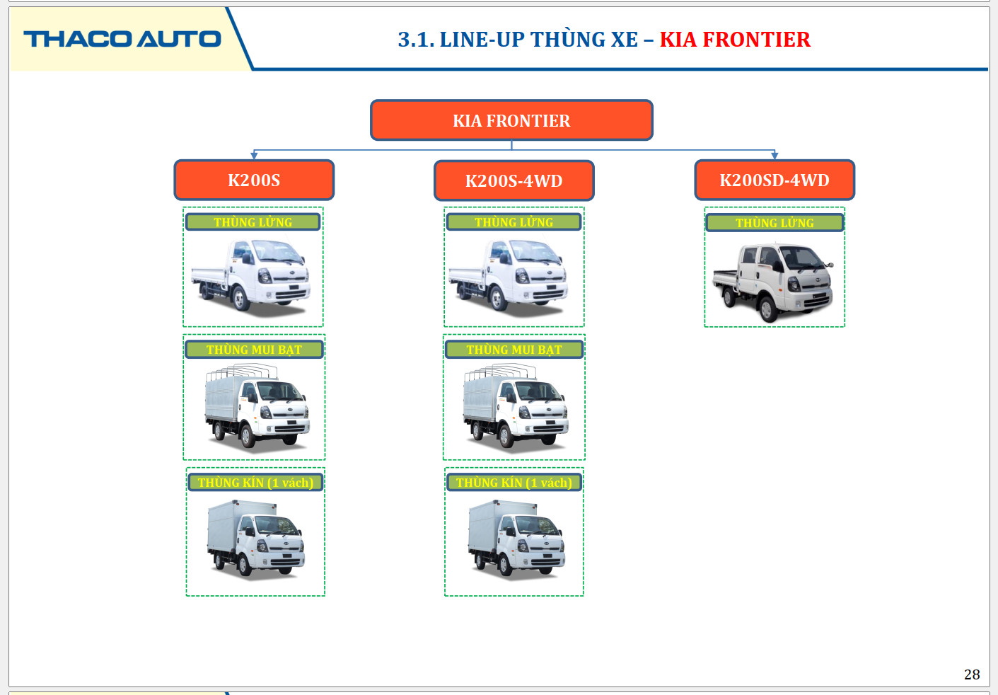 CÁC PHIÊN BẢN KIA K200S VÀ KIA K200SD