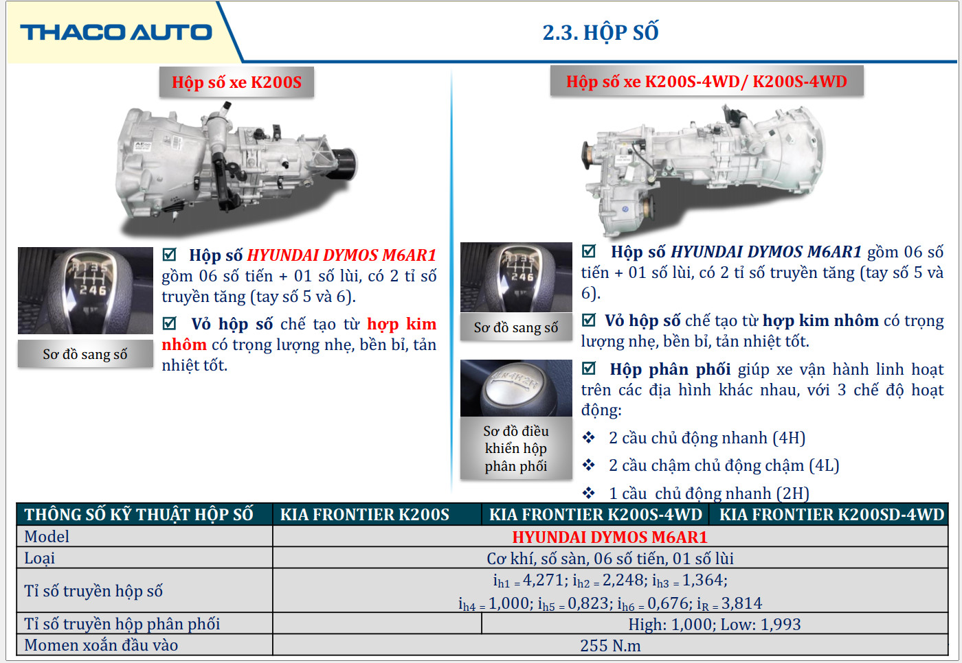 | Tỷ số truyền chính | ih1=4,271; ih2=2,248; ibutton=1,364; ih4=1,000;
