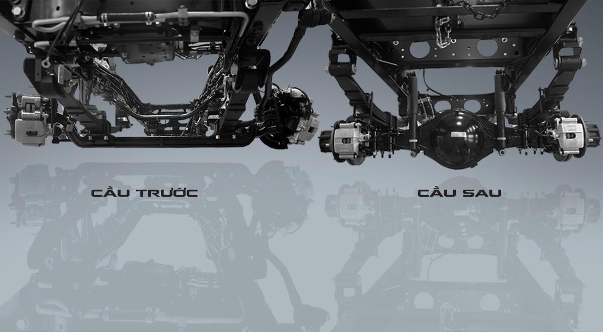 Cầu sau chế tạo từ thép hàn công nghệ hiện đại, có kích thước lớn, thiết kế nhiều gân chịu lực, khả năng chịu tải cao.