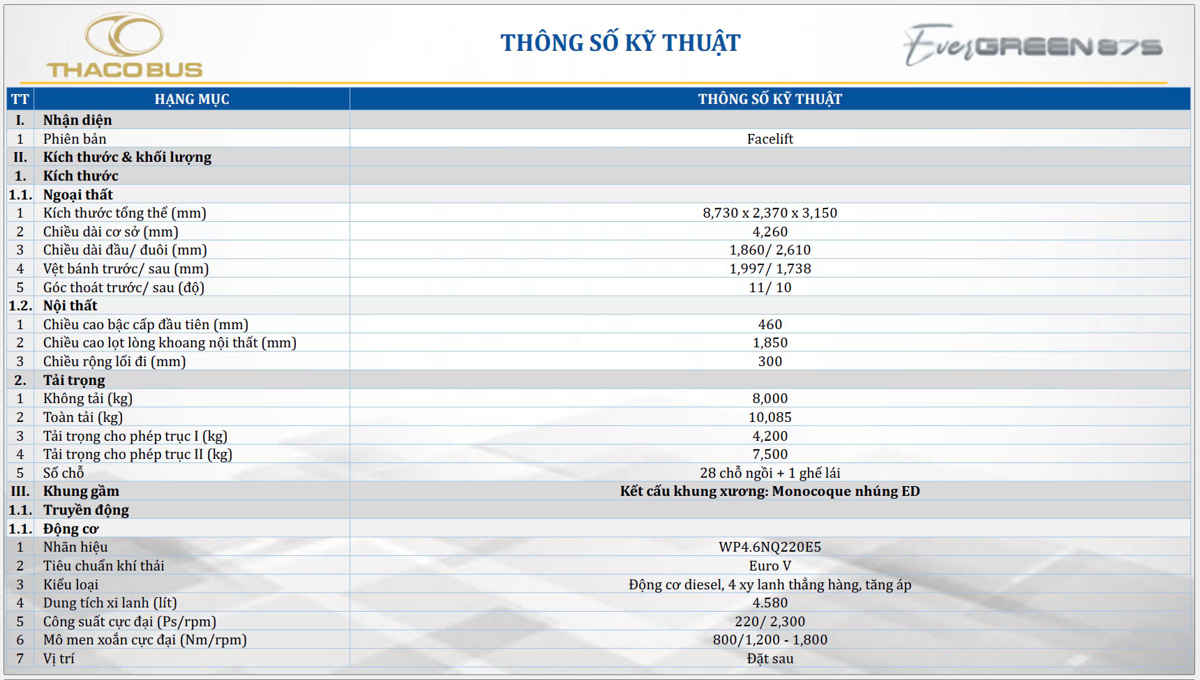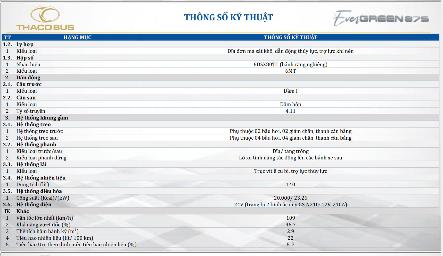 XE KHÁCH THACO 29 CHỖ TB87 (EVERGREEN 87S)