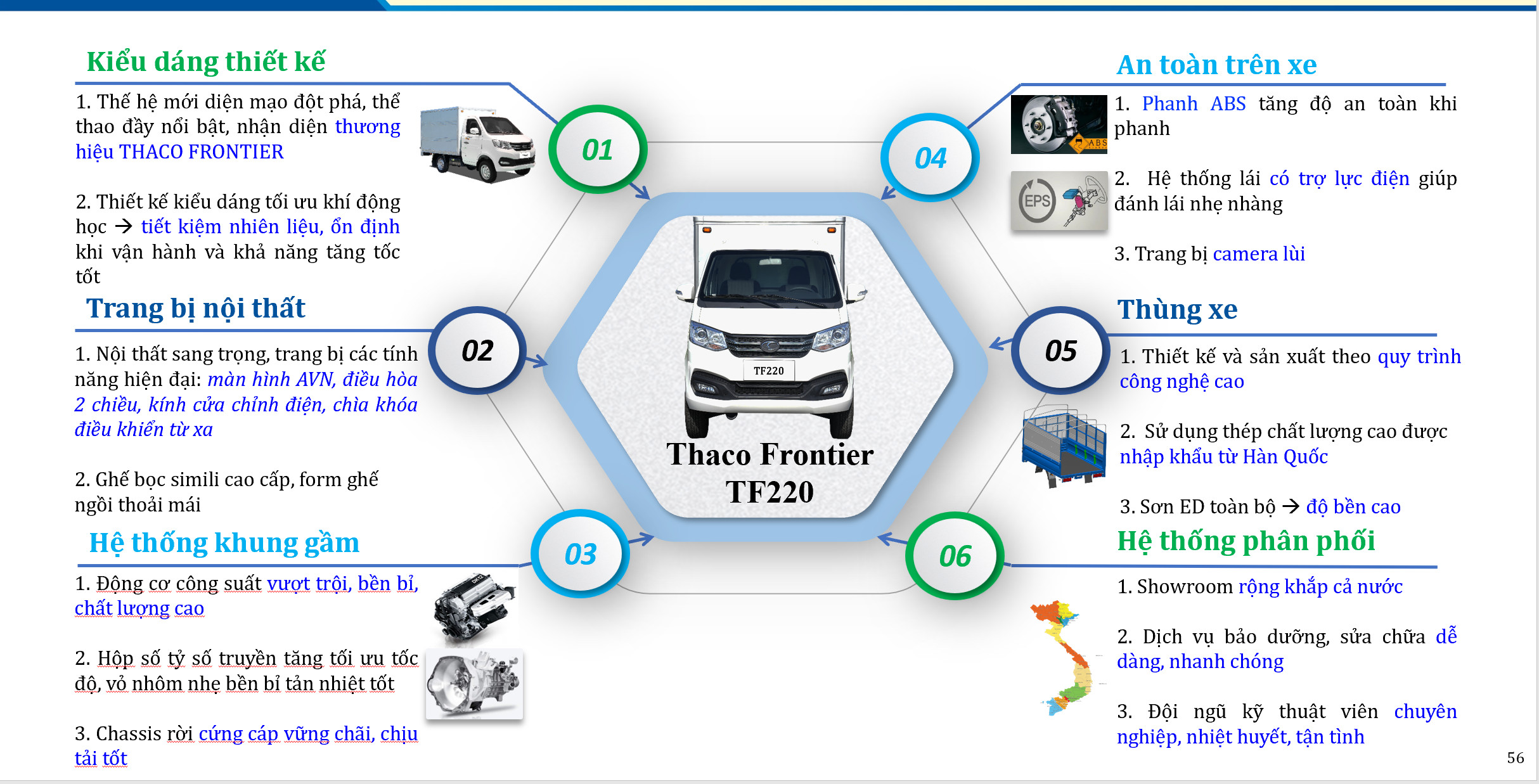 THACO Frontier TF220 là dòng sản phẩm xe tải nhẹ hoàn toàn mới, được thiết kế và ra mắt vào tháng 06/2023. Thay đổi hoàn toàn nội ngoại thất hiện đại và đẳng cấp hơn. Trang bị Động cơ Công nghệ Nhật Bản thân thiện với môi trường và tiết kiệm nhiên liệu. Sản phẩm có kích thước thùng lớn và thùng xe được sản xuất trên dây chuyền hiện đại, độ hoàn thiện cao, chịu tải tốt.