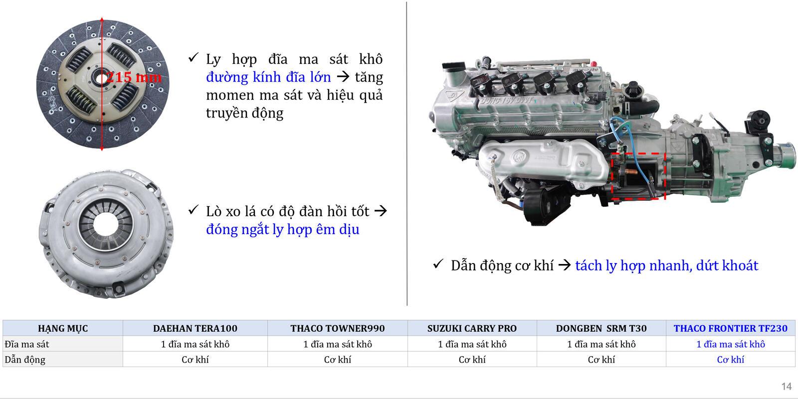 | Ly hợp | Đĩa đơn, ma sát khô, dẫn động cơ khí | |