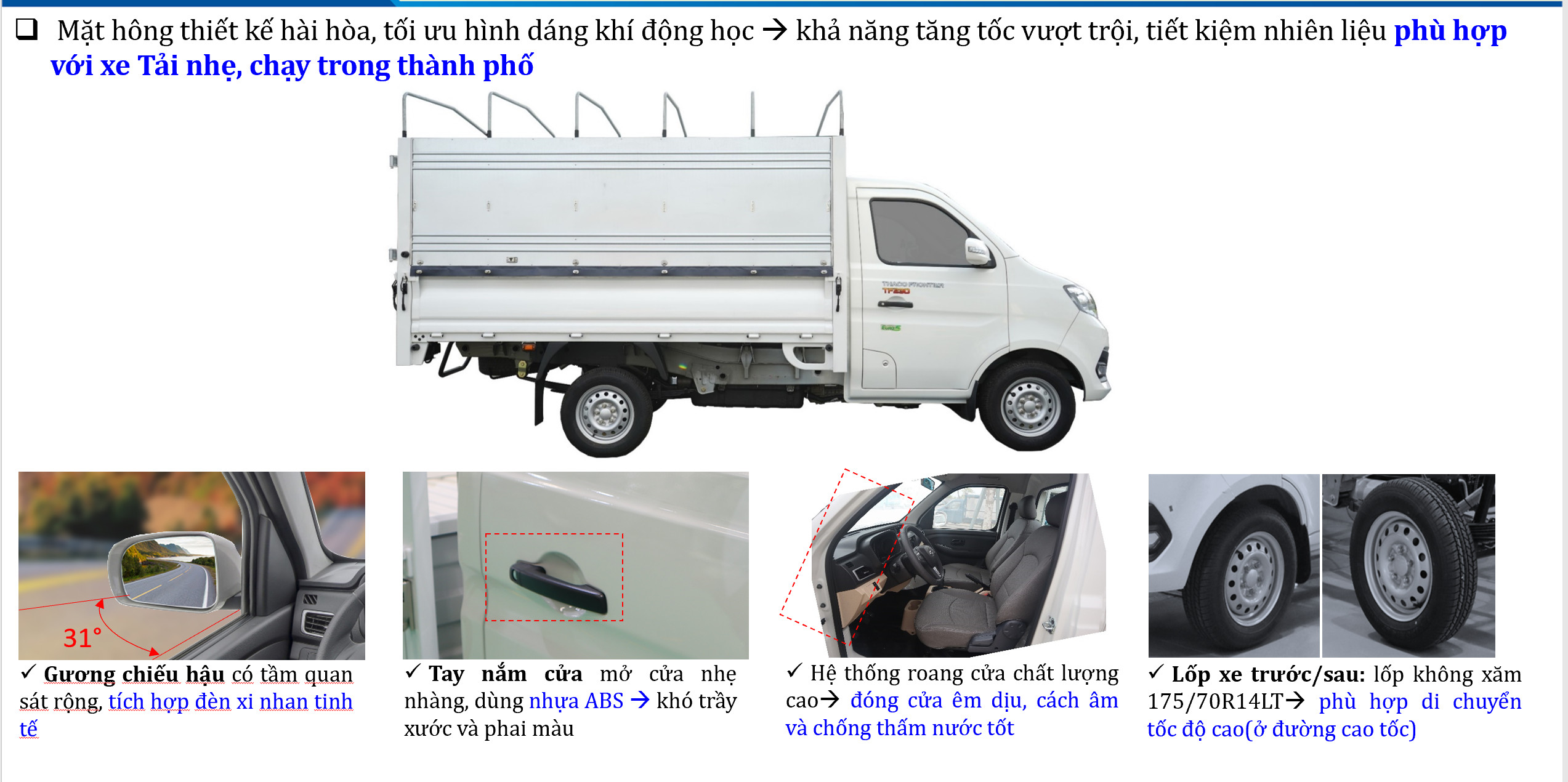 - Thùng lửng: 2.800 x 1.680 x 1.600 ; 920 Kg.
