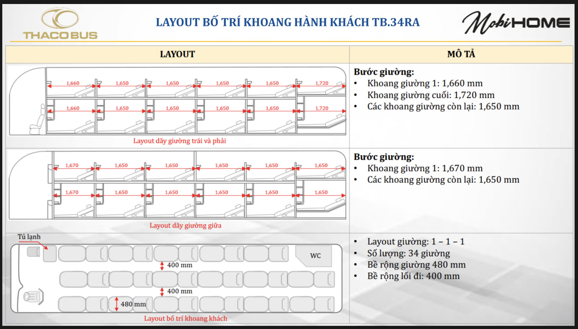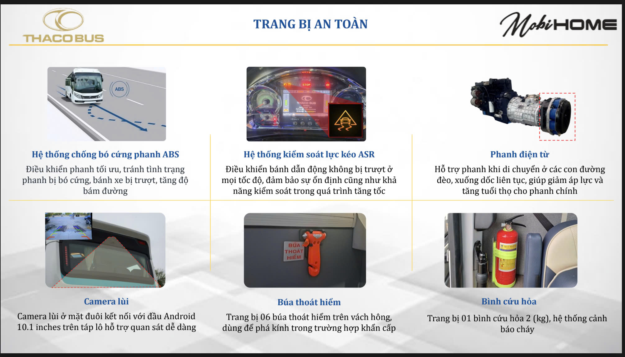 THACO MOBIHOME - dòng sản phẩm xe Bus Thaco 34 phòng cao cấp thế hệ mới được nghiên cứu, thiết kế và sản xuất lắp ráp với nhận diện hoàn toàn mới, không gian nội thất sang trọng, trang bị nhiều tính năng an toàn, tiện nghi, đáp ứng nhu cầu riêng biệt của khách hàng.