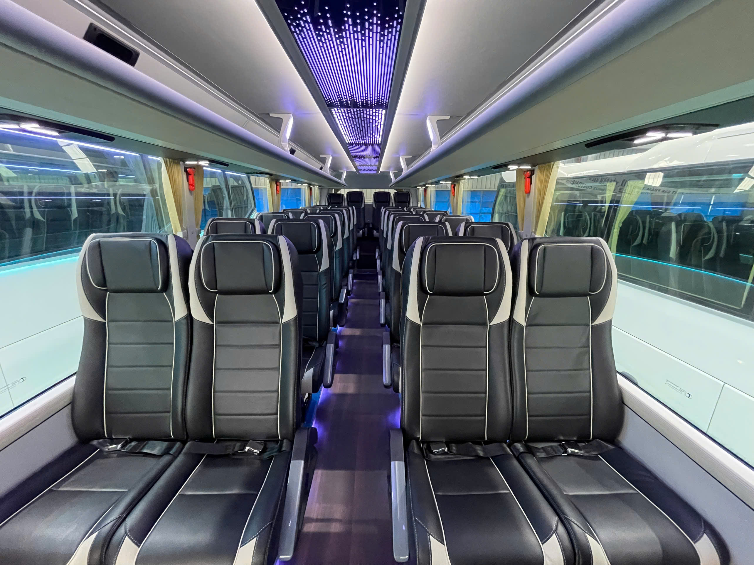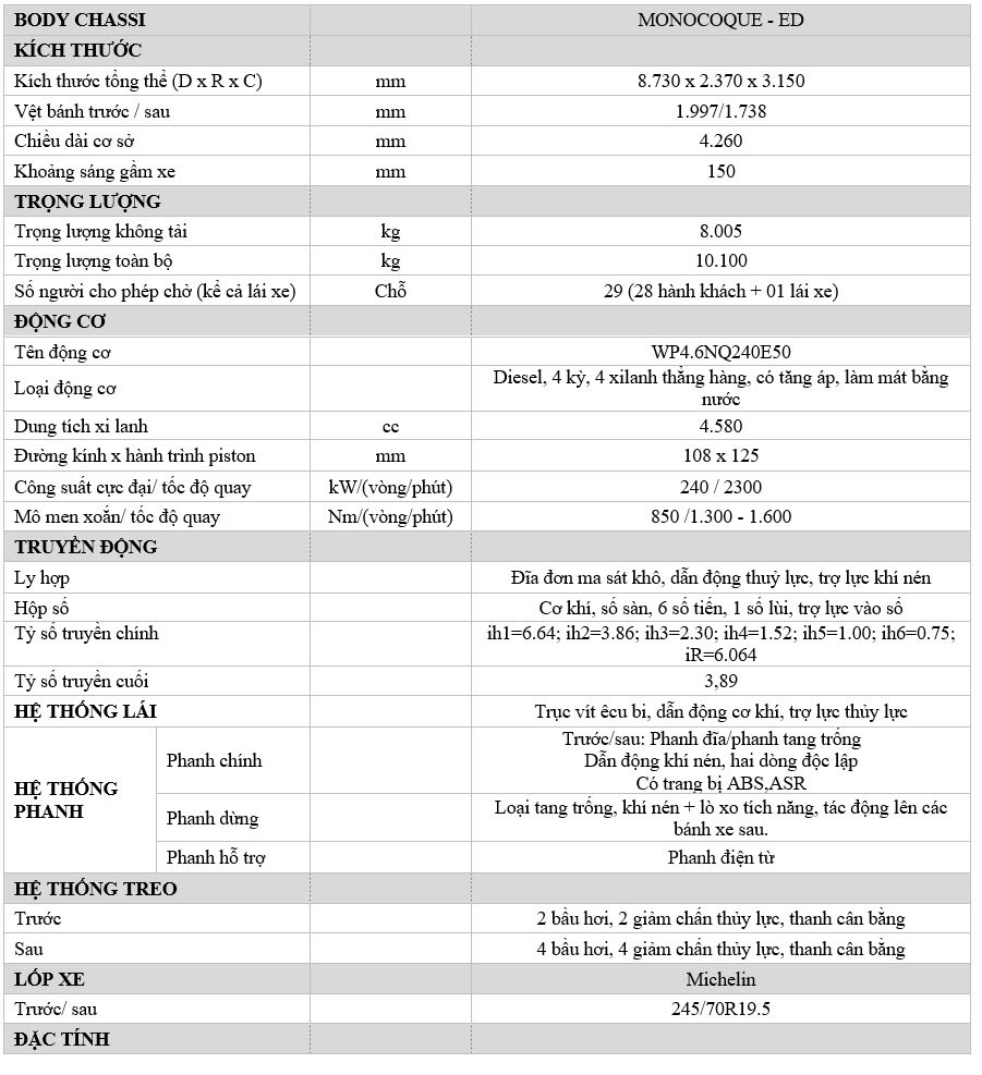 - Khoang hành khách được lựa chọn ghế theo yêu cầu, trang bị đèn trần giọt sương, sàn vân gỗ, đèn kệ hành lý, rèm xe... Đặc biệt không gian rộng rãi thoãi mái...