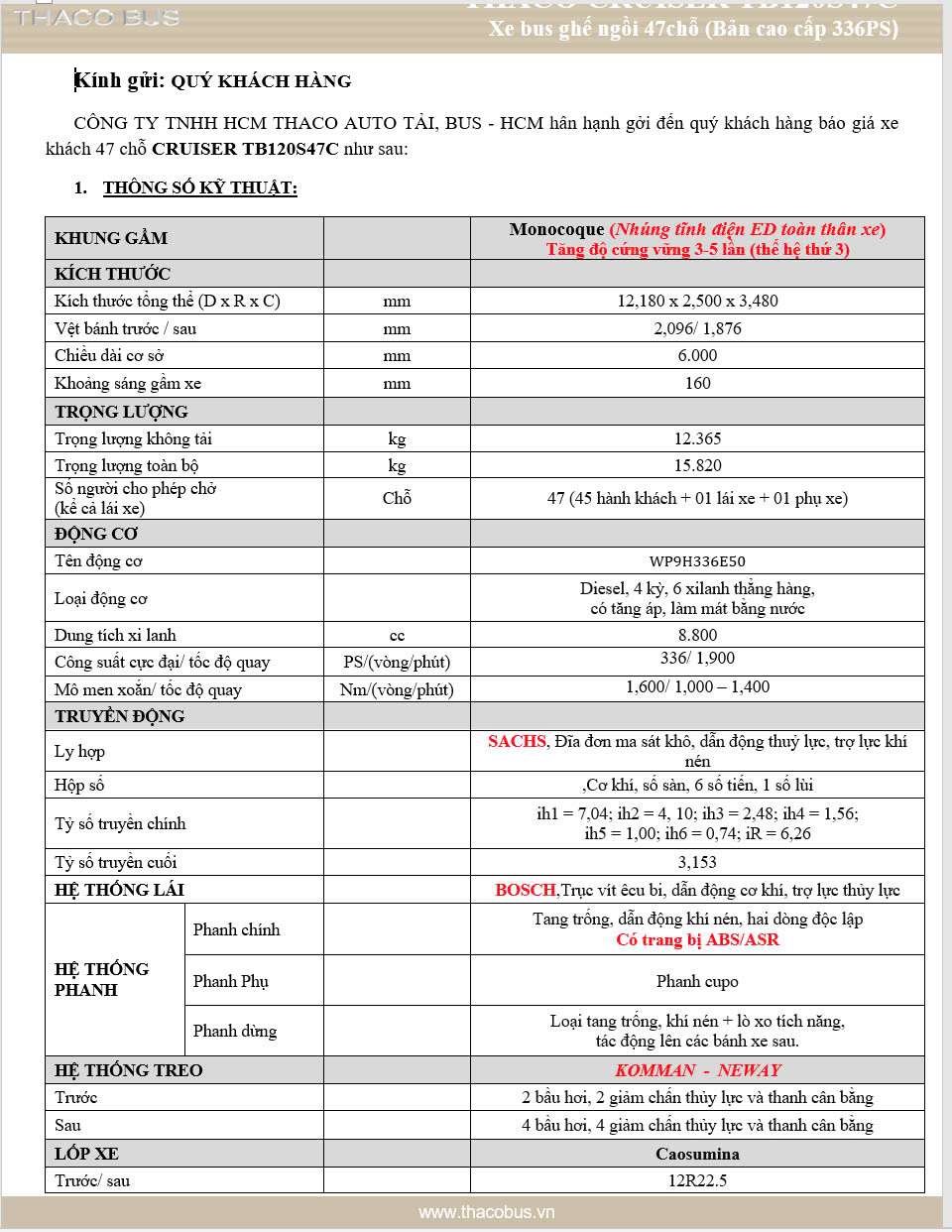Dòng xe 47 chỗ TB120 máy 336 Ps