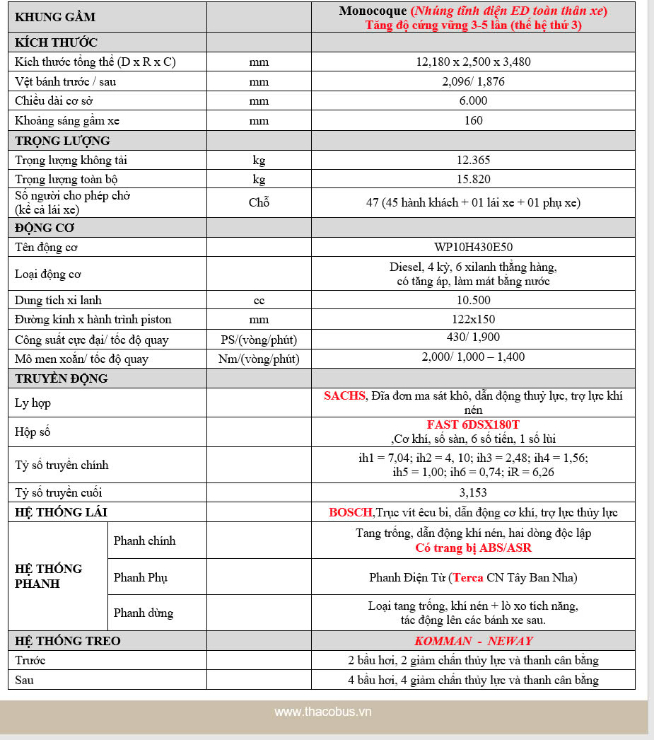 Dòng xe 47 chỗ TB120 máy 430 Ps