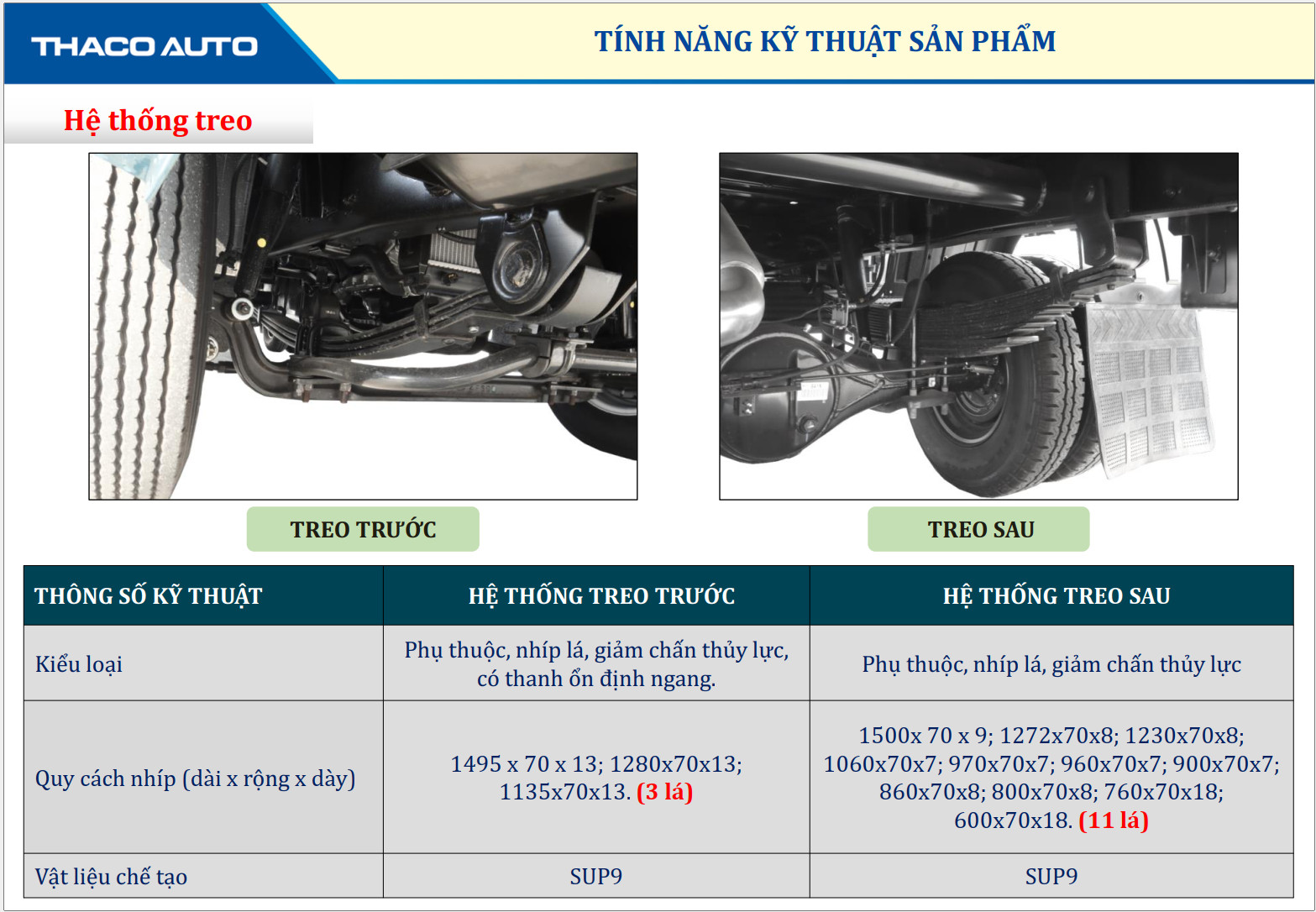 | Sau | Phụ thuộc, nhíp lá, giảm chấn thủy lực. |