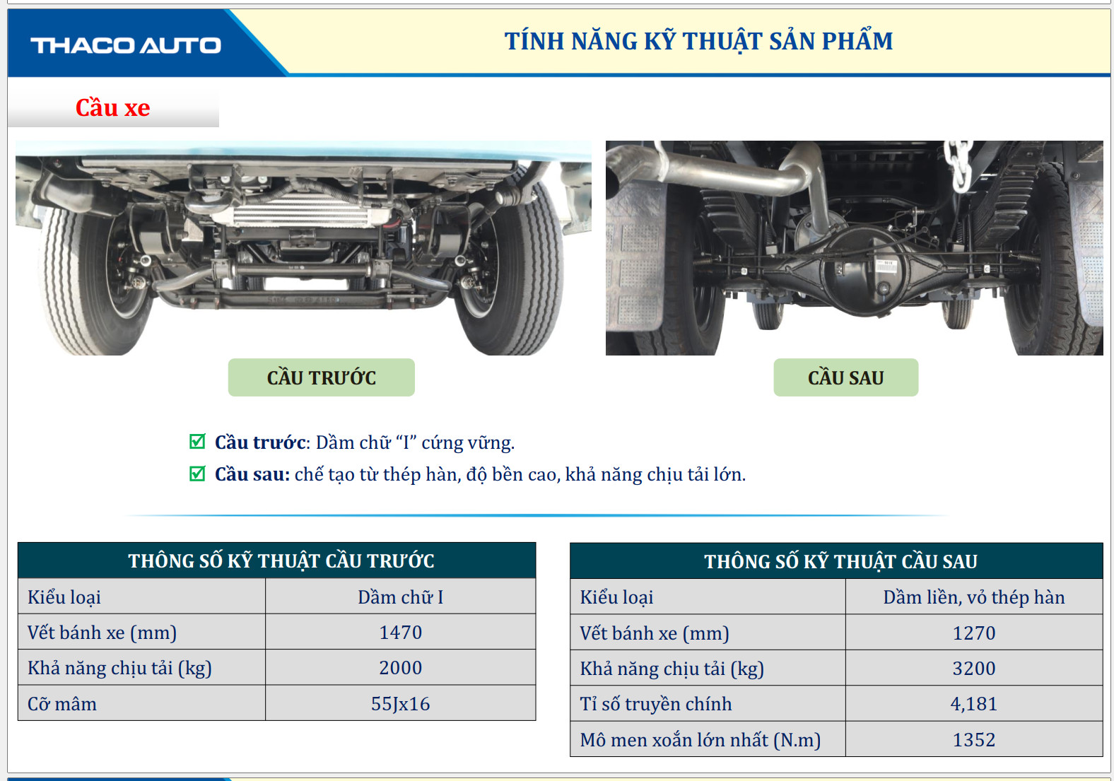 Cầu xe: Trang bị cầu xe cứng cáp, khả năng chịu tải cao...